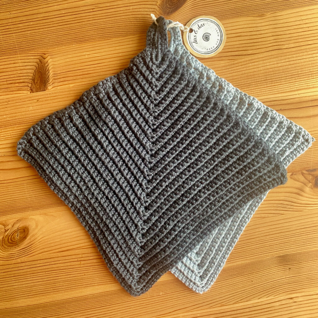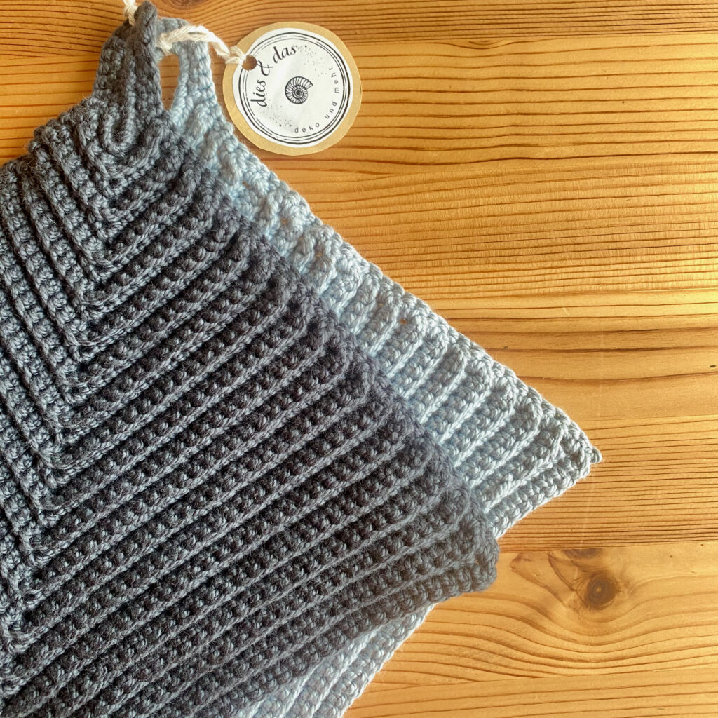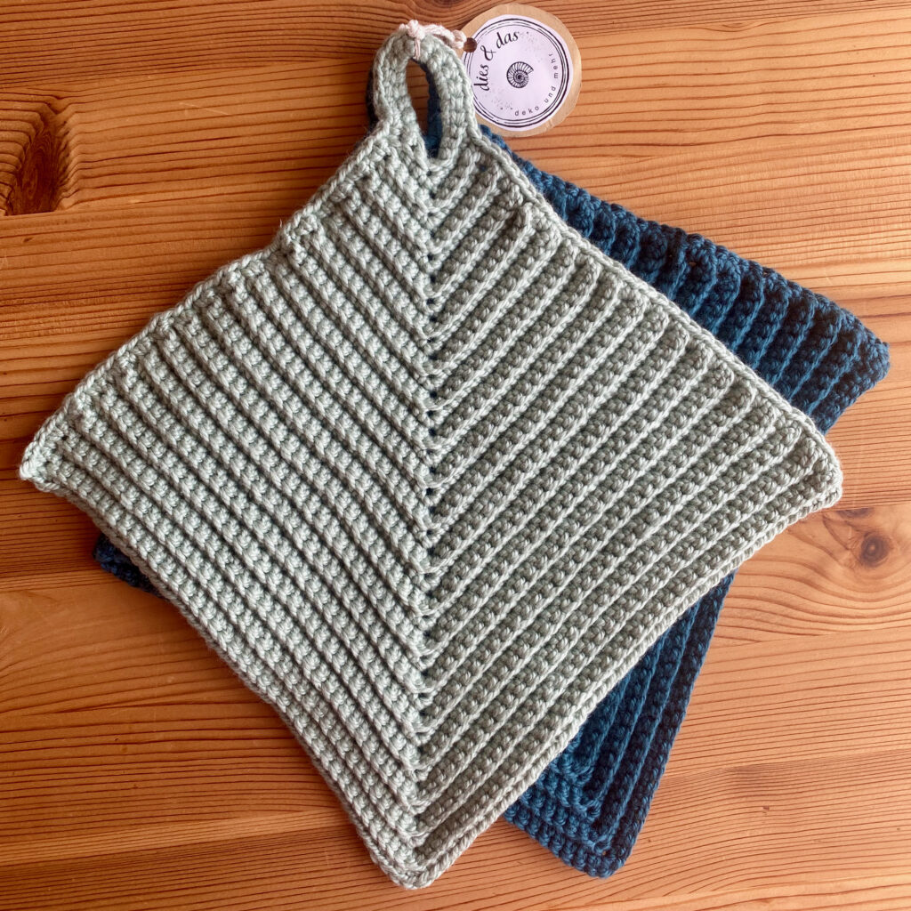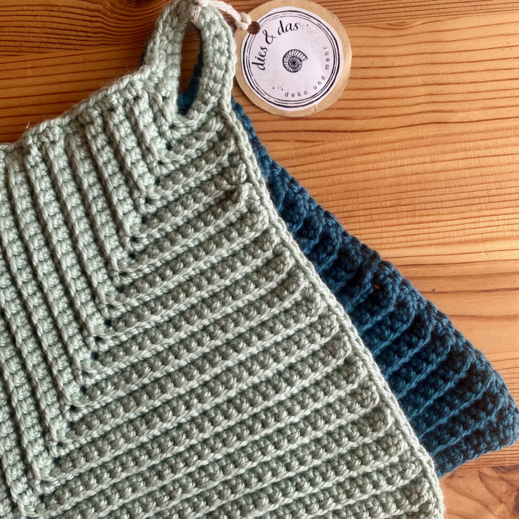 Gehäkeltes Topflappen-Set wie zu Grossmutters Zeiten mit Aufhängeschlaufen in diversen Farben (siehe Bilder). Aus Baumwollgarn. Das Material ist sehr weich und angenehm anzufassen. Kann problemlos in der Waschmaschine gewaschen werden.
