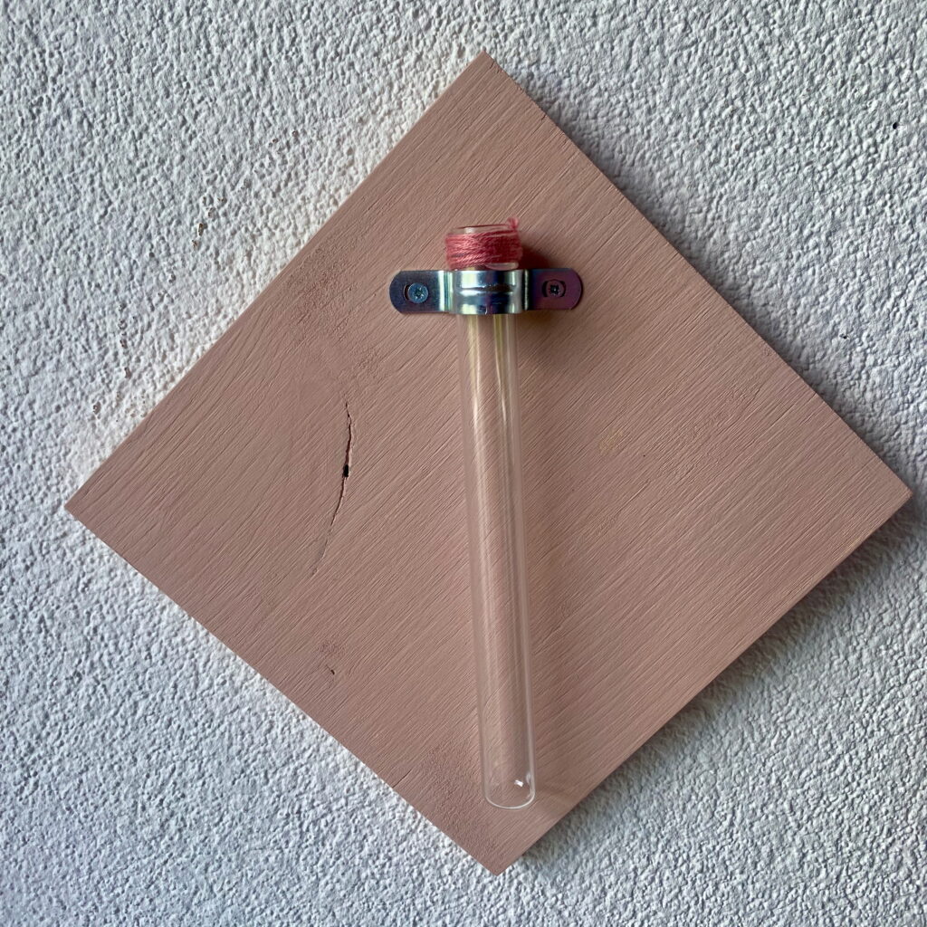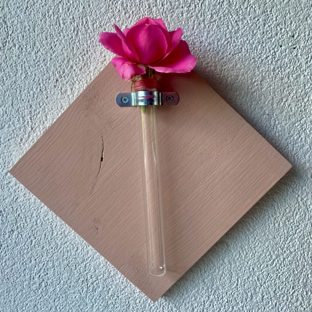 Originelle Wandvase quadratisch, rosa, mit Reagenzglas. Stylisch und praktisch für den Zimmerpflanzen-Liebhaber zum Nachziehen von Ablegern.